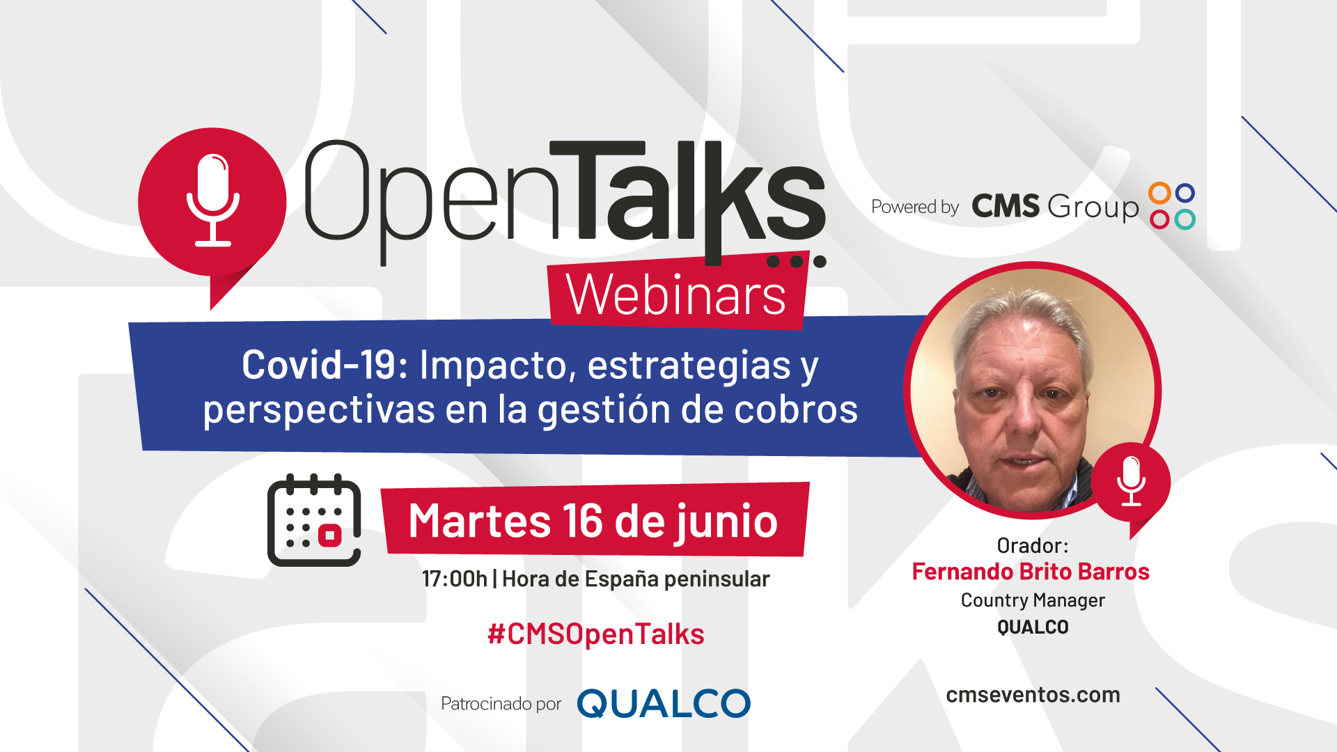 We are delighted to announce that on the 16th June 2020, our Country Manager Fernando Brito Barros will be a panel member at the Open Talks a series of Webinars hosted by the CMS Group. This webinar specifically focuses on the Covid -19 impact, strategies and perspectives in the collections’ management.